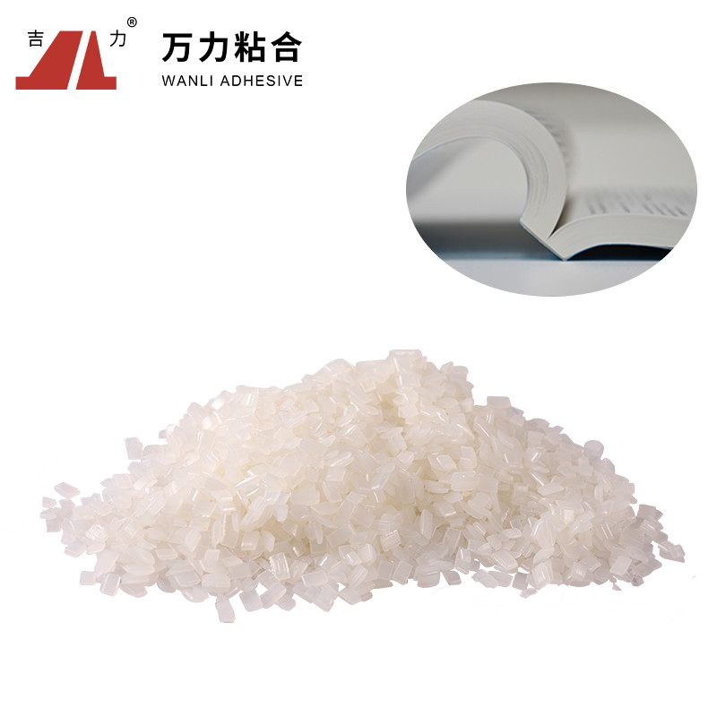 Chinesische Fabrik stellen direkt lichtdurchlässige flockige feste EVA Hot Melt Adhesive WANLI® 8225 mit Viskosität 7500±1000mpa zur Verfügung·s (160℃) für Buch-hintere Schwergängigkeit des gestrichenen Papiers von Papiergewicht ≤157G/m ²